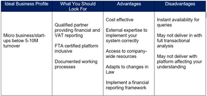 If your business lacks any platform, trained internal expertise or processes and is seeking a cost-effective solution, outsourcing presents the most viable and simplest option. In doing so, care should be taken in selecting the correct partner as you are fully reliant on their determination on your returns and obligations.